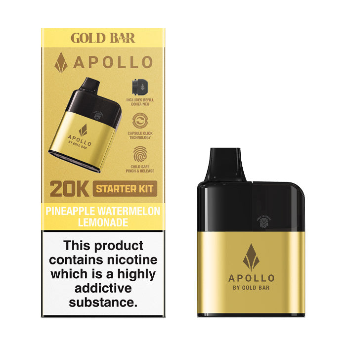 The Gold Bar Apollo 20K pre-filled Pod Kit is a sleek, portable device that delivers a premium vaping experience perfect for everyday use. Designed for ease and versatility, it provides up to 4000 puffs per refill pack (depending on your usage), letting you enjoy your favourite Gold Bar flavours at a lower cost than single-use disposables. Featuring a refillable, replaceable pod system, a USB-C rechargeable battery, and a 2ml pre-filled pod with an additional 5ml refill container, this kit offers bold flavour and long-lasting satisfaction.
