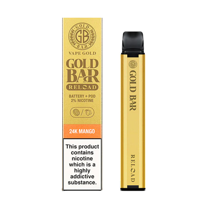 Vape Gold’s Gold Bar Reload Vape Kit looks just like a regular Gold Bar disposable vape but features a rechargeable 500mAh built-in battery and takes pre-filled pods. It produces the same intense flavour and discreet cloud but lets you save some money and waste less as you only have to replace the pods. The Gold Bar Reload is great for beginner vapers thanks to its low maintenance and inhale activation.