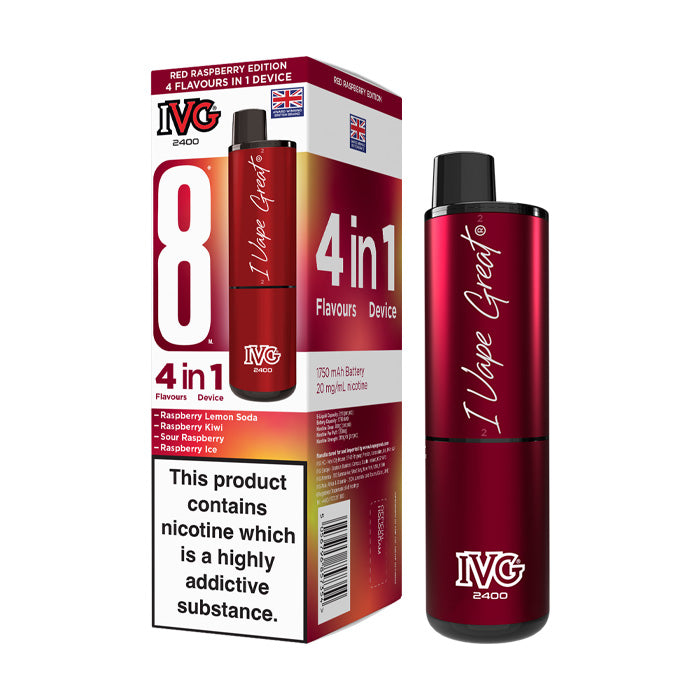 Red Raspberry Edition 1 x Raspberry Lemon Soda | 1 x Raspberry Kiwi | 1 x Sour Raspberry | 1 x Raspberry Ice