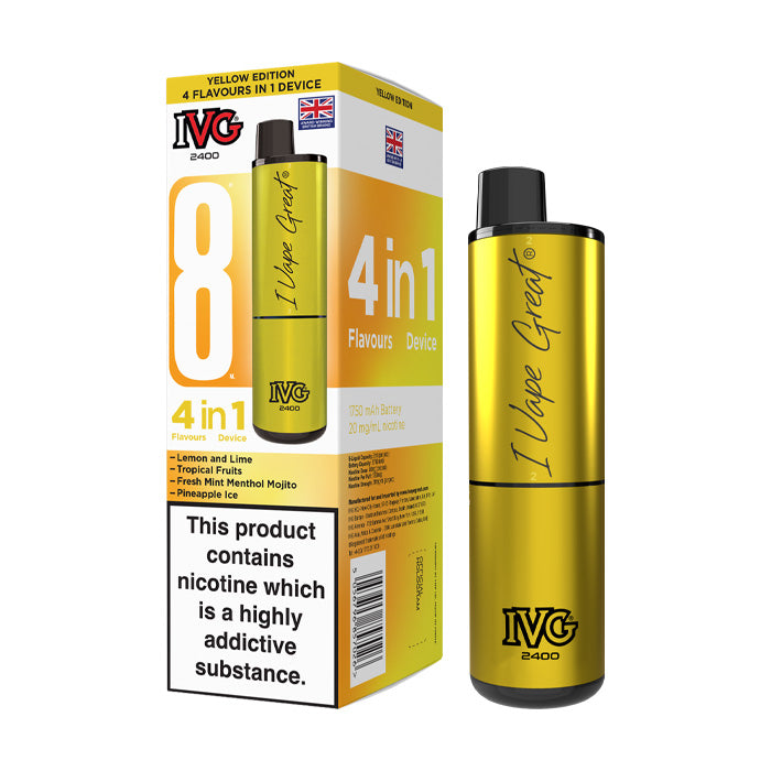 Yellow Edition 1 x Lemon and Lime | 1 x Tropical Fruits | 1 x Fresh Mint Menthol Mojito | 1 x Pineapple Ice