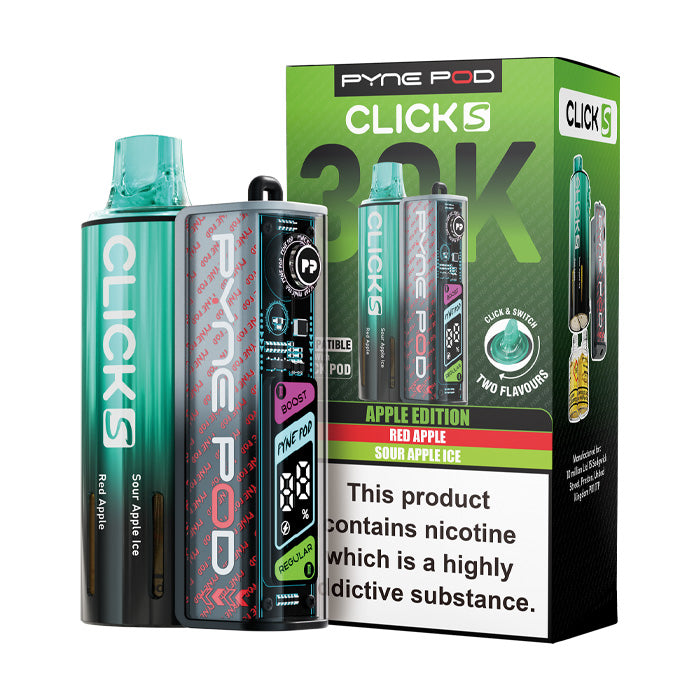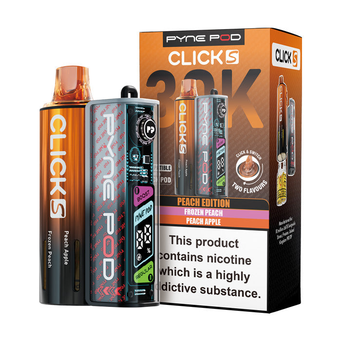 The Pyne Pod Click S 30K is a premium addition to the Click device family, designed for smooth MTL vaping with big, satisfying puffs. This prefilled vape kit combines convenience and performance with a rechargeable 900mAh battery and replaceable refill packs, making it both eco-friendly and versatile. Available in a wide variety of flavours, the Pyne Pod Click S can deliver up to 30,000 puffs, giving vapers long-lasting enjoyment. Its inhale-activated system ensures simplicity, while the OLED screen provides real-time battery and mode information, making this device perfect for both new and experienced vapers seeking reliable, flavourful satisfaction.