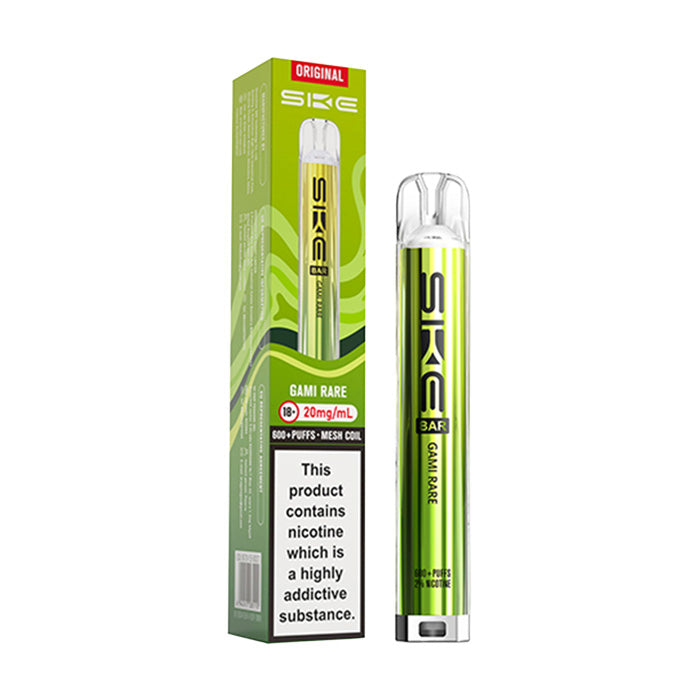 The SKE Bar 600 blends style, simplicity, and performance into one sleek, crystal-clear device. Compact yet powerful, it’s fitted with a robust 500mAh rechargeable battery that keeps up with your daily vaping needs. Designed for easy, inhale-activated use, the Bar 600 delivers instant satisfaction with no buttons or setup required. Its slim, pocket-friendly build and premium crystalline finish make it the perfect travel companion for smooth, on-the-go vaping. This kit comes prefilled with 20mg nic salt for a smooth and satisfying hit. If you would like something without nicotine, try the SKE Bar 600 Zero Nicotine.