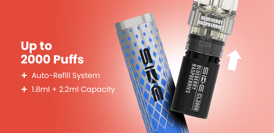 The SKE CL2000 vape kit is built for vapers who want a sleek, easy-to-use device with reliable performance. It delivers an all-day battery, a generous 4 ml total e-liquid capacity and up to 2,000 puffs for longer between changes. Blending style, simplicity and convenience, it’s ideal for everyday vaping on the go.
