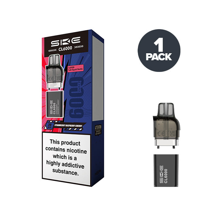 SKE CL6000 Strawberry Raspberry Cherry Pods are loaded with 20mg of salt nicotine, bringing you an ultra-smooth hit and instant nicotine satisfaction, making them ideal for beginner vapers.